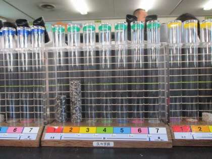 分けた砂を試験管に入れて分かりやすくしました。