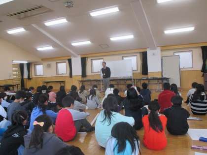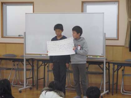 私たちの校区についてグループで調べたことを学年全員に発表しました。