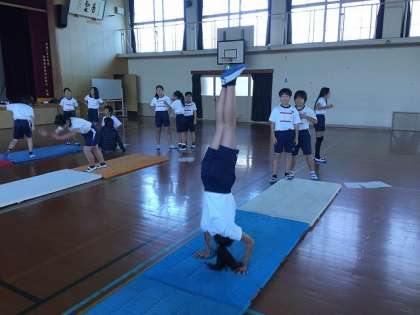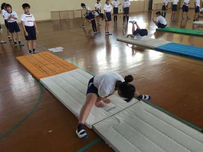 技カードを見ながらポイントをおさえてチャレンジしています。