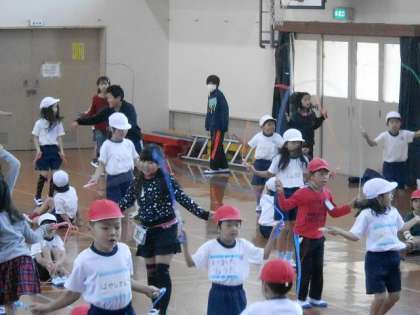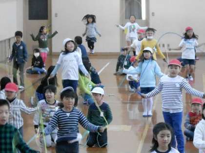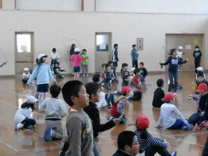 体育館に希望者が集い,3分間とび続けるという競技にチャレンジしました。