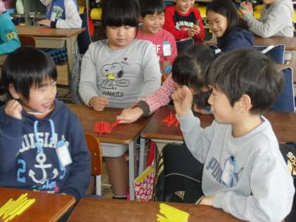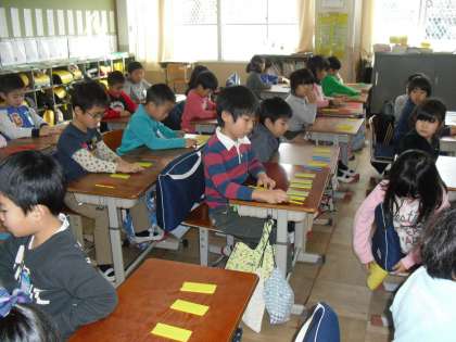 二人組でじゃんけんをして,数え棒を取っていきます。教室中に「さいしょは,グー。じゃんけんぽん。」の元気な声が響きます。