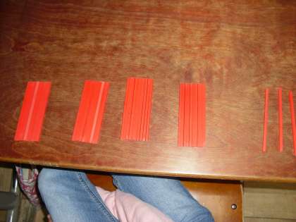 取った後は,何本か数えますが,「10のまとまりをつくる。」の考えは直ぐに出てきました。最後は,見ただけで何本あるか並べることができました。