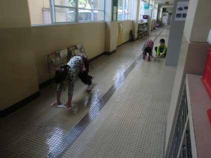 昨日の,全校道徳の時間に,「無言清掃」の話を聞いて,自分たちも取り組んでみようとがんばってみました。