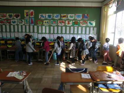 昨日,今日と二日間取り組んでみたのですが,チャイムの合図とともに,ささっと掃除用具をもって,自分の役割の掃除を始めました。