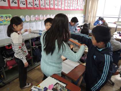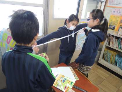 多くの子が,3分の1mの4つ分の長さでした。つまり,それは3分の4mだということを学習し,1より大きい分数があることを知りました。