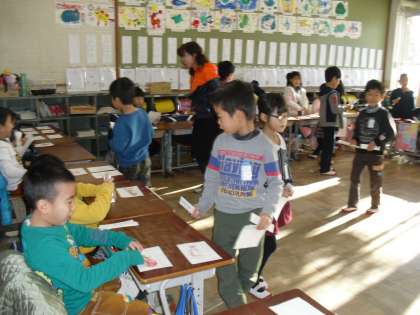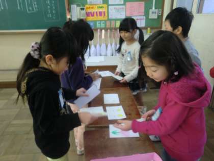 など,お店の人とお客さんの役に分かれて,言葉のやりとりもしました。