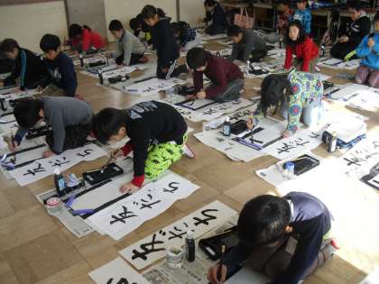 書写の時間に,書き初めで「友だち」を書きました。半紙の長さが長くなったので,教室をいっぱいいっぱいまで使って書いていました。丁寧に書けるように慎重になって,書いている子がたくさんいました。