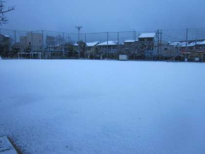 朝からの雪で校庭は真っ白でした。だれの足跡もついていない運動場は,いつもと違う静けさでした・・・。(そのあと,大喜びの子どもたちで運動場の静寂はやぶられましたが・・・【笑】)