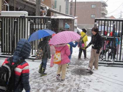 6年生の「桂離宮」への社会見学は,雪のために滑りやすく,せっかくの庭園の様子が見えにくいということで26日に延期となりました。