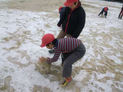 生活科「ふゆもげんきに」の学習で,雪遊びをしました。
