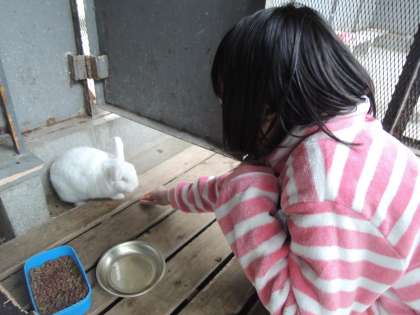 今日の中間休みに,うさぎのミミーへの餌やり体験がありました。各クラスから代表1人が餌をあげることができます。