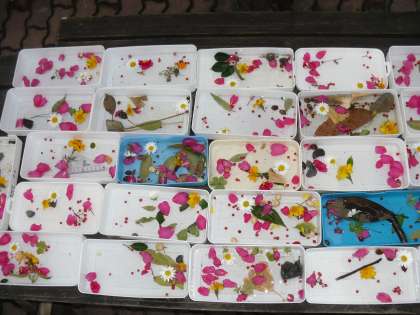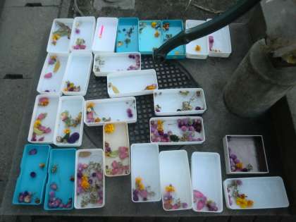 外に,水の中にお花やはっぱをいれたものを用意しておきました。