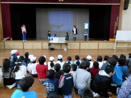 給食週間の行事の一環として,給食委員会による「シルエットクイズ」がありました。