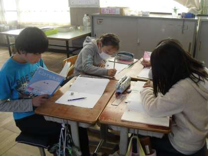 今日は,学習したことを生かしてグループごとにメモを取る練習です。みんな,前よりうまくなったようです。