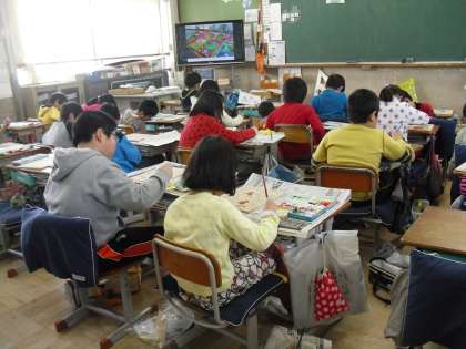 図工の学習では,木の板に絵を描き,色塗りをしています。来週からはいよいよくぎを打ち始めます。くぎ打ち名人になれるかな・・・?