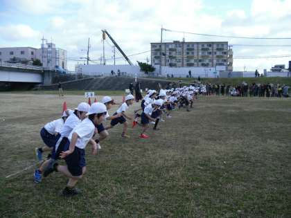 寒い中のマラソン大会になりました。1年生は初めての3kmを走りきりました。「がんばれ。」「あと,もうすこし。」「そのちょうし。」たくさんの声援がうれしかったようです。
