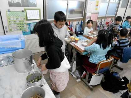 デザートとして桜餅がついてきましたが,子ども達の中には「さくらのはっぱ」を食べるのが初めて,という子もいました。