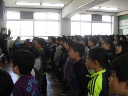 4年生は,6年生にクラブや部活を中心にお世話になりました。感謝の気持ちとこれからの中学校生活を応援する気持ちを込めて歌いたいと思っています。やわらかい声で歌えるよう何度も練習を重ねています。当日が楽しみです。