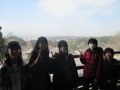 二月堂に来た子どもたちの様子です。景色がとてもきれいなところでした。