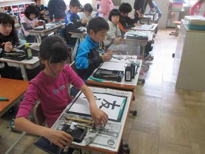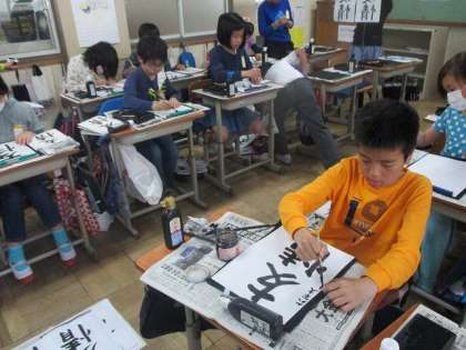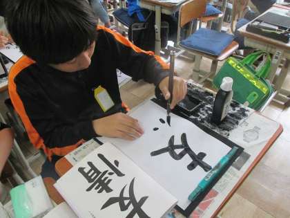今日は6年生になって初めての書道でした。みんな集中して一画一画丁寧に書くことができました。