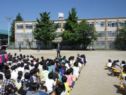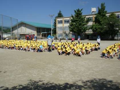 本日は,震度6の地震がきた後,給食室より出火という想定で訓練を行いました。高学年の子どもたちが,静かにすばやく行動しているのを見て,大変頼もしく感じました。