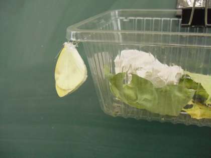 理科「こん虫を育てよう」の学習で、幼虫から育ててきたモンシロチョウが羽化しました。3年生の第1号の蝶です。子どもたちは、蝶が飛び立っていくまで、じっと見守っていました。次々と蝶が羽化するのが、楽しみです。