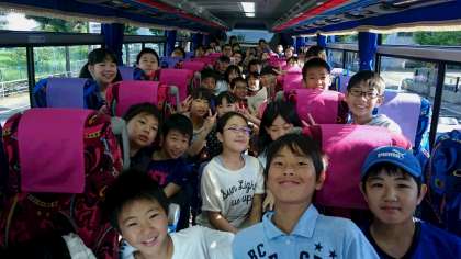 保護者の皆さんの見送りで予定通りバスが出発しました。