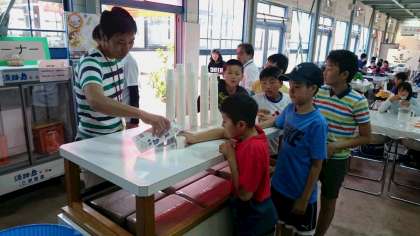 カレーライスでお腹いっぱいになったら、搾りたて牛乳の試飲ができます。