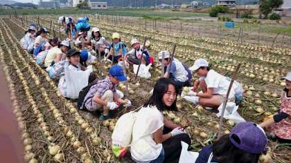 淡路島特産の玉ねぎ掘りに挑戦です(^-^)