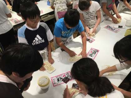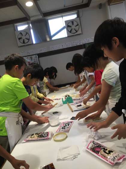 麺と出汁を袋に入れ,名前を書いてオリジナルのうどんが完成しました!
