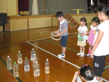 子どもたちは,ボウリングやまとあて,わなげなど自分の行きたいところへ行きました。運動委員のお兄さんやお姉さんに優しくルールを教えてもらい,「頑張るぞ!」とやる気満々で挑戦していました。