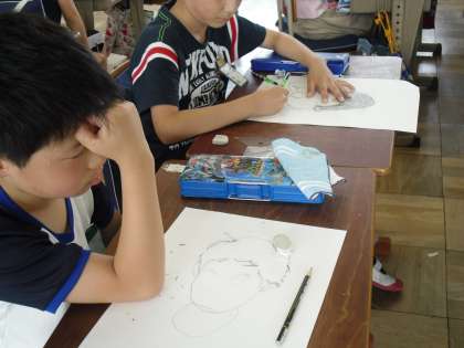 目・鼻・口の形や髪の毛の向きにも気をつけました。人はなかなか難しいなという感想でした。