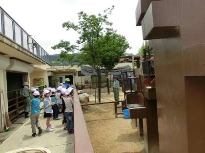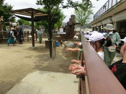 ふれあい体験2 やぎのえさやりです。待っていても,なかなか来てくれません。