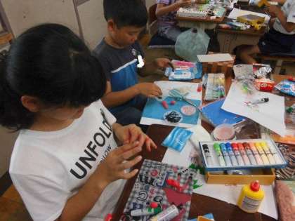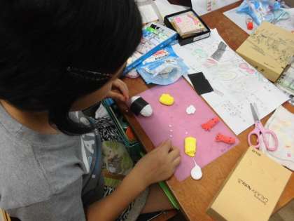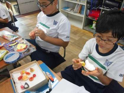 紙ねんどを使って,世界にひとつのお弁当を作っています。本物そっくりでとてもおいしそうです。