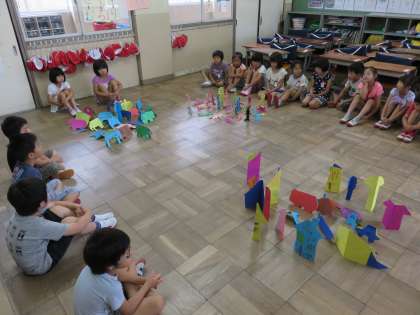土曜参観日に,図画工作「おって たてたら」の学習で,作品をつくる様子を見ていただきました。