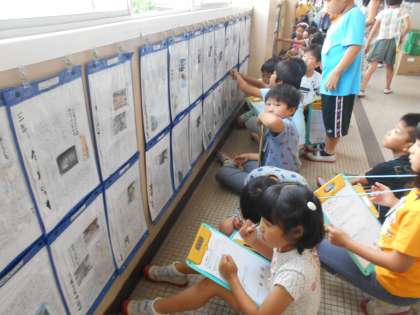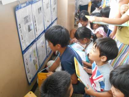 総合「大すき桂東のまち」の学習で、友だちの作った新聞を見て、よいところやわかったことをまとめました。初めて新聞を作った子どもたちは、「御霊神社の新聞を作るだけでも大変だったのに、毎日、新聞を作っている人たちはとても苦労しているということが分かった。」と話していました。写真にどんな写真かコメントを書いたり、見出しを工夫したりするとよりよい新聞になるので、次もがんばりたいと振り返っていました。
