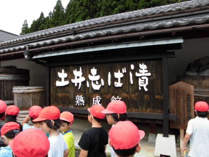 土井のしば漬け工場に着き,バスを降りるとお漬物の良い香りがしていました。子どもたちは,「山に近いね。」「いいにおいがする。」という声がありました。