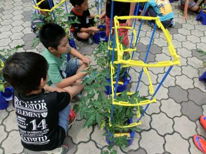 野菜ができてきました。子ども達は,毎朝『やさいのけんこうかんさつ」をして,収穫できるのを楽しみにしています。