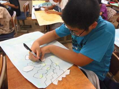 4年生は,世界に一つのお弁当に続き,世界にひとつだけのまぼろしの花を描いています。どんなめずらしい花ができあがるか楽しみですね。