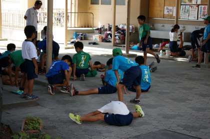 昨日の記録会で頑張った桂東ランナーズの子どもたちは,ストレッチを中心に各自の体のケアをしました。その後ミーティングをして夏休み前半の総仕上げとしました。