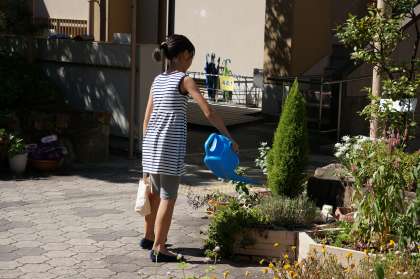 桂東小学校では,明日からの1週間も教職員がローテーションを組んで,水やりや餌やりに来校してくれます。いつも全校集会で話をしている「子どもも教職員も『桂東小学校は私の学校です』と胸を張って1人称で言える学校」の姿の一つだと感謝しています。