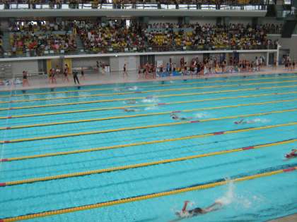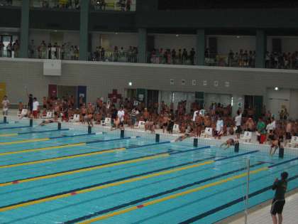 短水路の25mプールとは違う,長水路のプールに緊張も重なり,