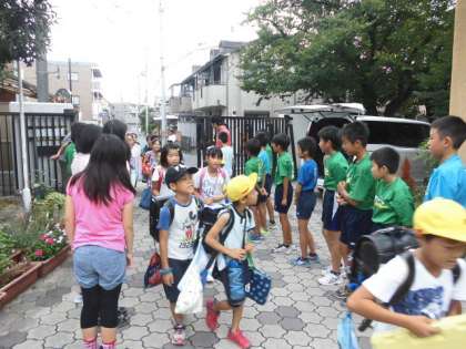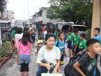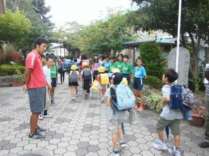今日から桂東小学校では,あいさつ運動を始めました。各クラスで毎日門の前に立ちあいさつをします。