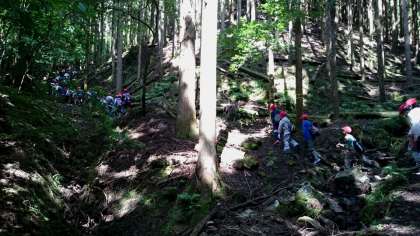 旧花背スキー場跡を過ぎると道が狭くなり、本格的な山道になります。