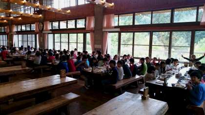 花背山の家での最後の昼食ですが、食堂は初めてです。