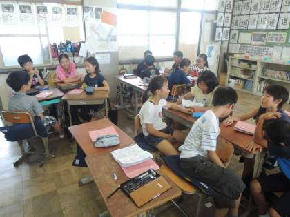 4日間の山の家では,楽しかったことやがんばったこと,大変だったことなどたくさんの経験をしました。そこから学んだことや考えたことを,これからの自分に生かすために班でふり返りをしています。