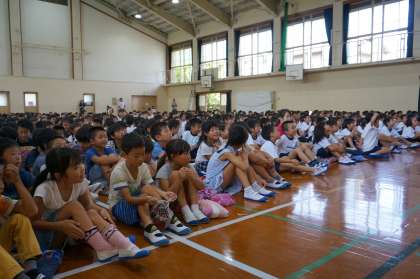 今日まではA組,B組でしたが,今日からはA組は赤組,B組は白組になりました。10月1日(土)の運動会に向けて全校で取り組んでいきます。