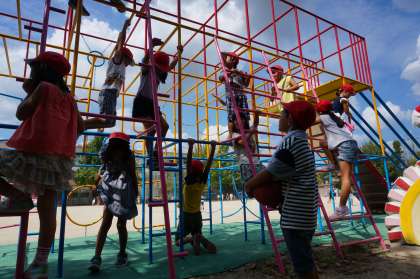 9月に入ったとはいえ,まだまだ照りつける太陽と蒸し暑さで外遊びの条件としてはあまり良くはありませんが,台風の合間の晴れ間に,暑さに負けず子どもたちと先生方がたくさん遊びに出ています。