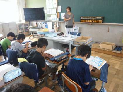 そろばんの学習をしました。小数のたし算・ひき算もそろばんで計算できることを知りました。