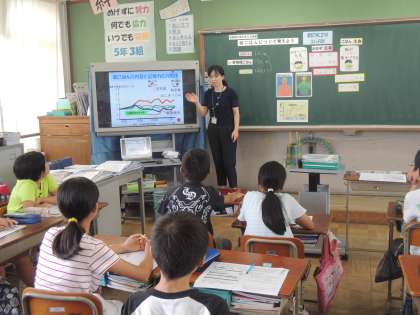 食の指導では,栄養教諭の増田先生と一緒に「朝ごはん」について考えました。